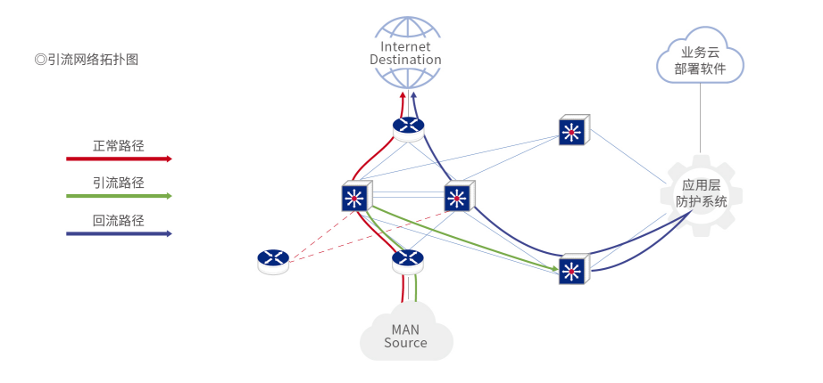 而本項目則采用"雙向引流"技術,該技術基于電信的網絡優勢,具有技術實施的壟斷排他性,能夠大大增強了部署的靈活性,可以對電信網內的任意地址在任意時間內無需用戶操作即可部署防御,對用戶實現完全的透明度和零感知,特別適合保障期間和突發 0Day重要漏洞等諸多場景,并可滿足企業、政府等目標用戶的多樣性特殊要求。