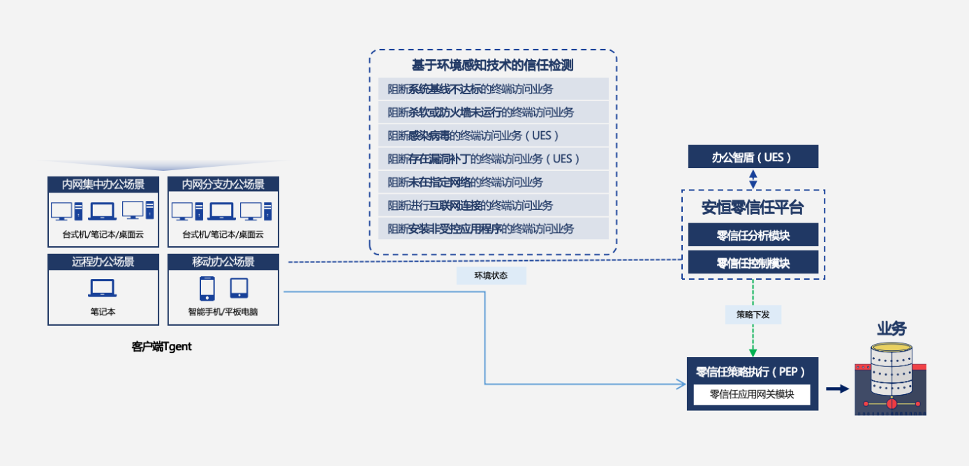 - 持續(xù)監(jiān)測、感知終端環(huán)境及用戶行為,只針對(duì)合法用戶、合法終端開放安全通道。