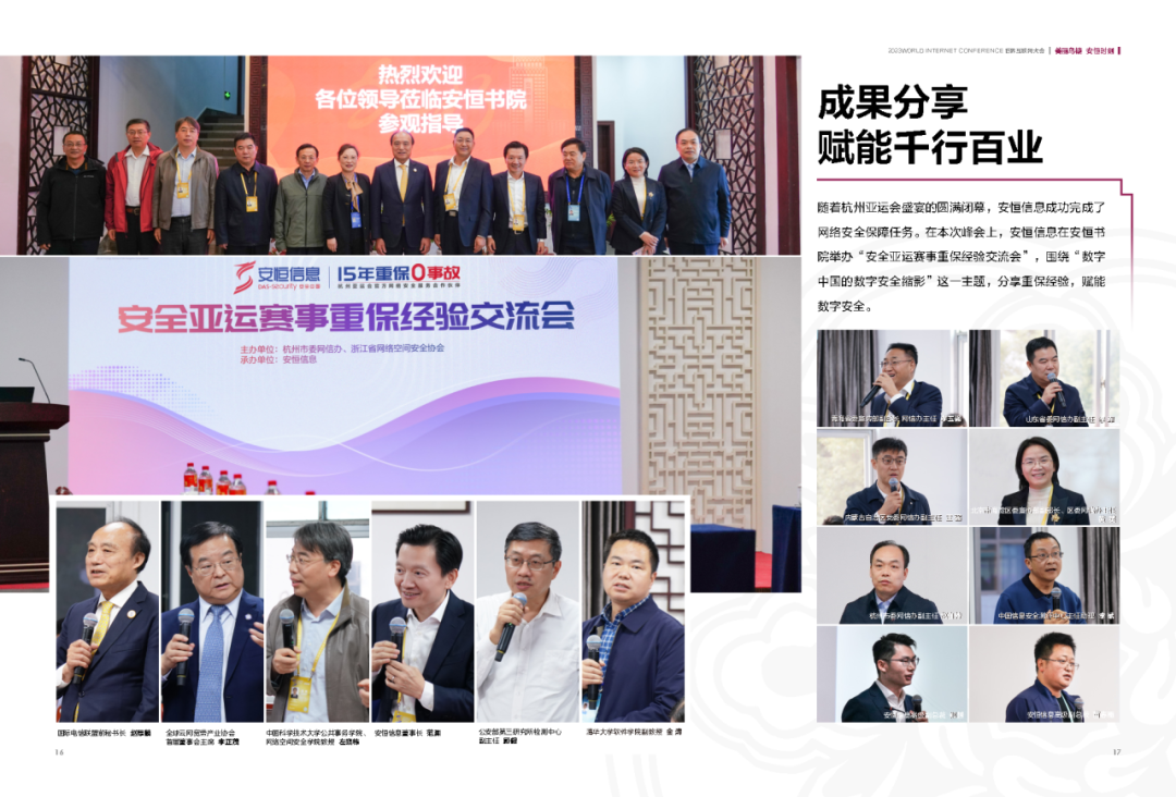 安恒信息以十五年重保零事故為主線,依托杭州亞運會網絡安保為載體,攜五大看點亮相023年世界互聯(lián)網大會“互聯(lián)網之光”博覽會。