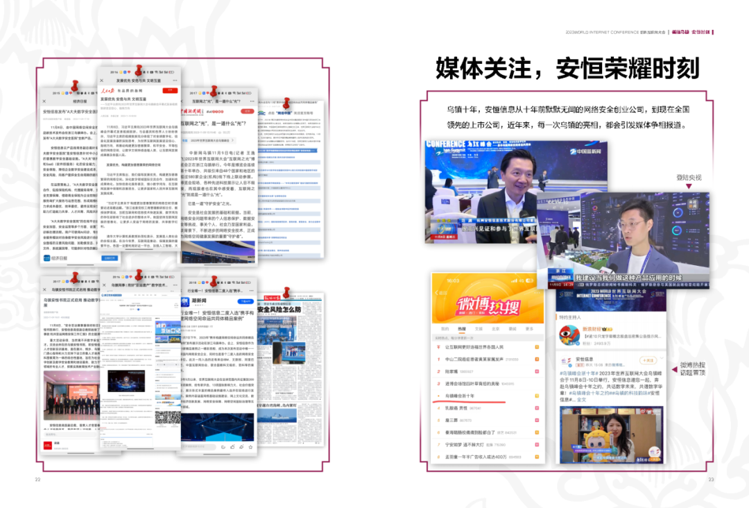 盛宴落幕、回憶不止,安恒信息集齊世界互聯(lián)網大會精彩時刻,采編發(fā)布2023世界互聯(lián)網大會回憶錄——《美麗烏鎮(zhèn) 安恒時刻》電子特刊,翻閱讀覽,難忘48時辰、回顧點滴瞬間。