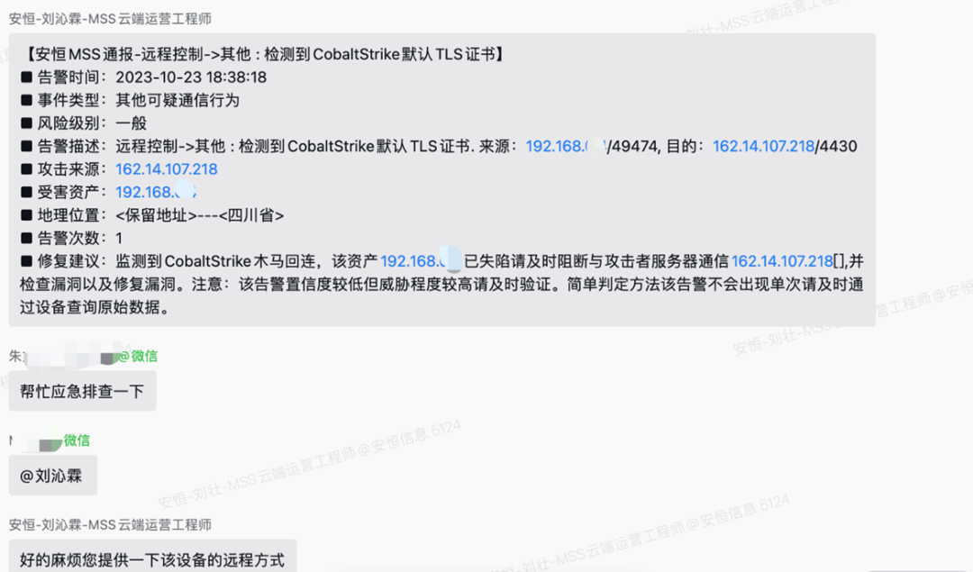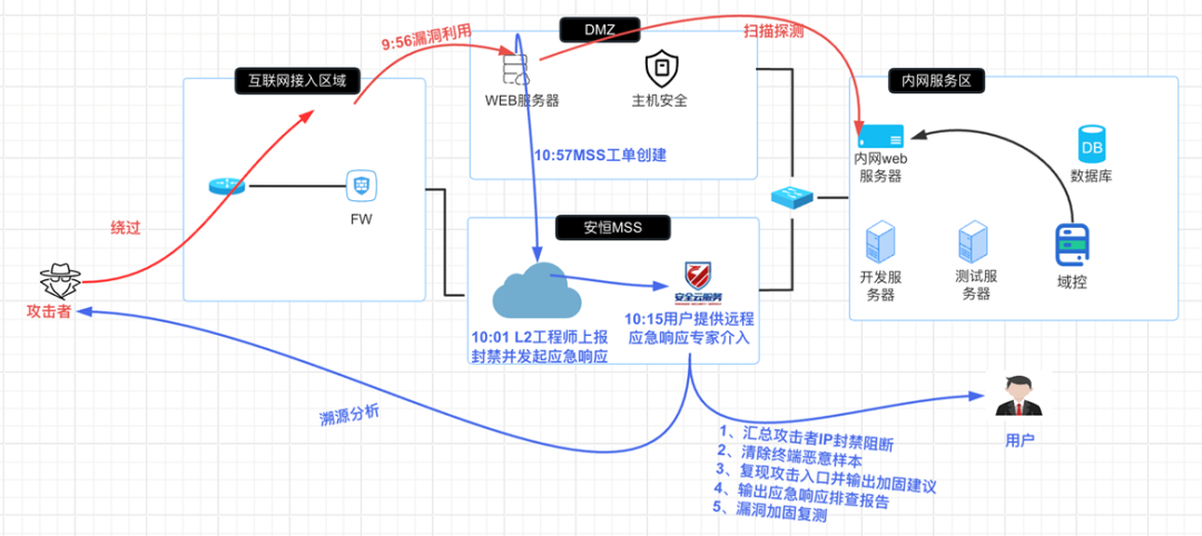 ③MSS服務人員確定資產(chǎn)已失陷,同步用戶風險及時阻斷并上報應急響應專家組為用戶提供應急溯源分析;