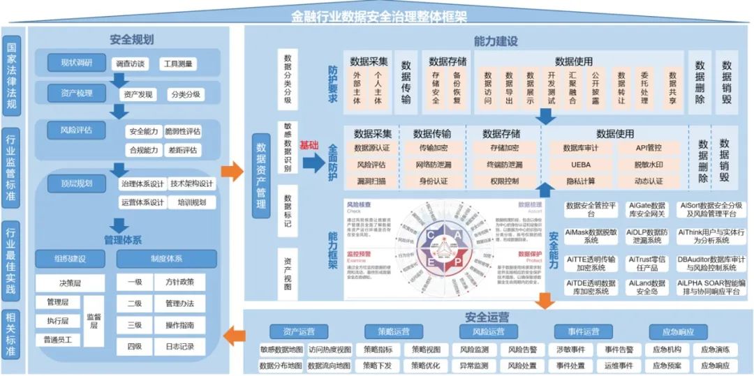 加強證券行業數據安全管理體系建設,在明確數據權責的基礎上,對數據進行分類分級,并以數據全生命周期安全防護要求為重點,構建目標明確、職責清晰、層次分明、落地性強的制度規范。加強靜態和動態數據資產的精確識別,以分級分類為基礎,以數據生命周期安全為目標。實施“數據安全三不同策略”—對不同等級數據在不同應用場景下實施不同類型的防護措施。