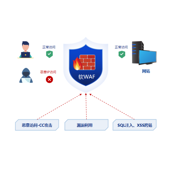 自研軟waf引擎,針對網站常見的 SQL注入攻擊、XSS跨站、Web容器及應用漏洞利用(如文件名解析漏洞防護 )進行實時防護