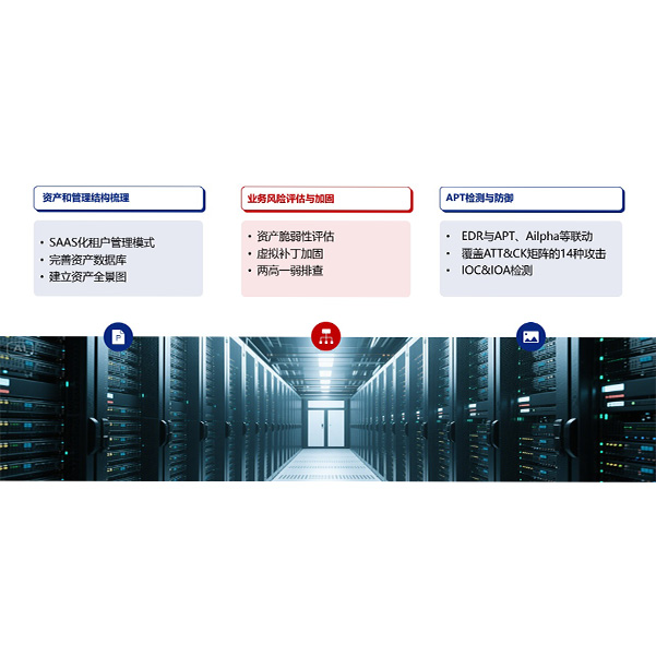 1、資產風險排查:對弱口令、風險賬號等進行專項評估,修復漏洞規避無文件攻擊,對第三方組件Web服務、數據庫等收斂暴露面;
