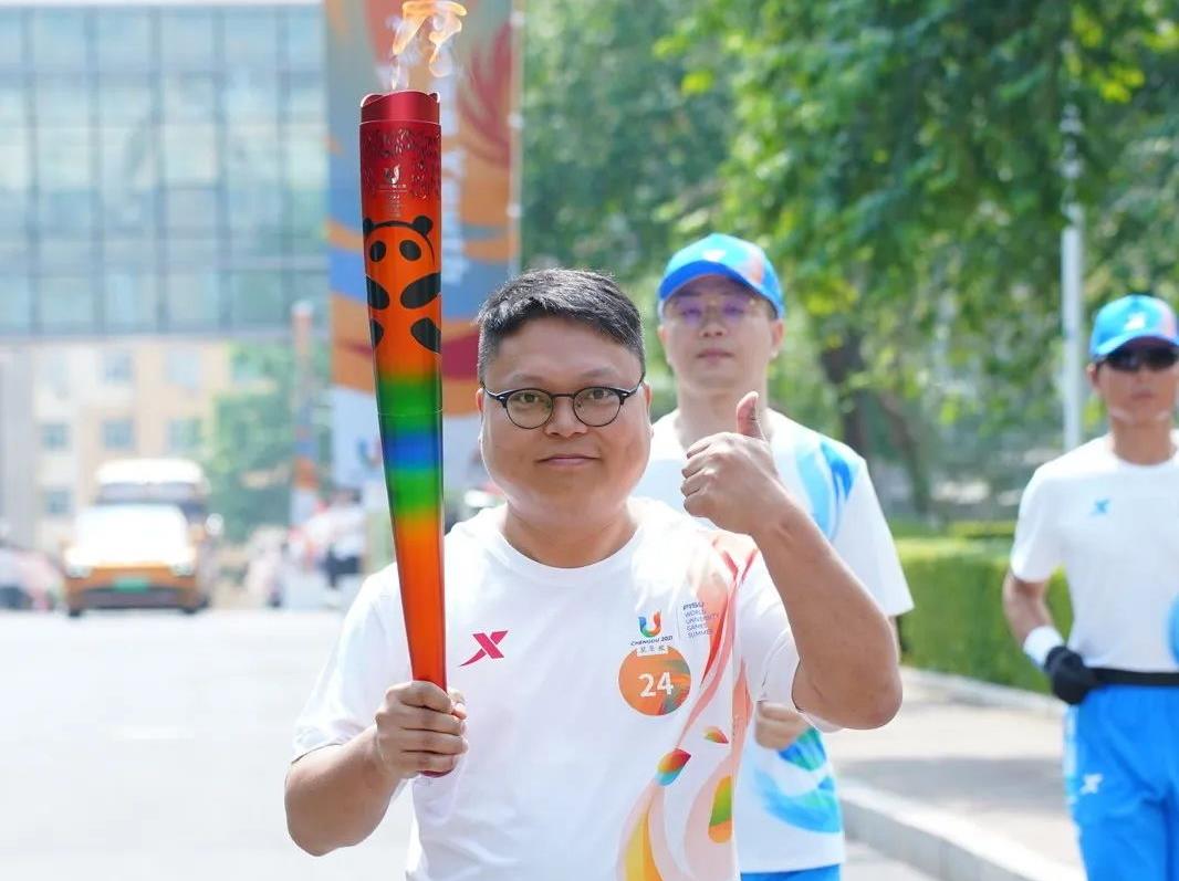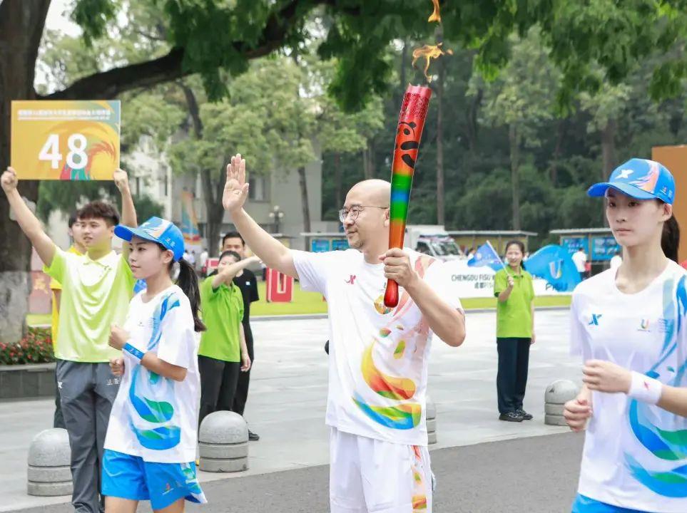 安恒信息副總裁何恐于成都體育學院第16棒接過火炬繼續傳遞